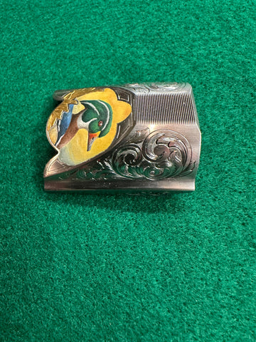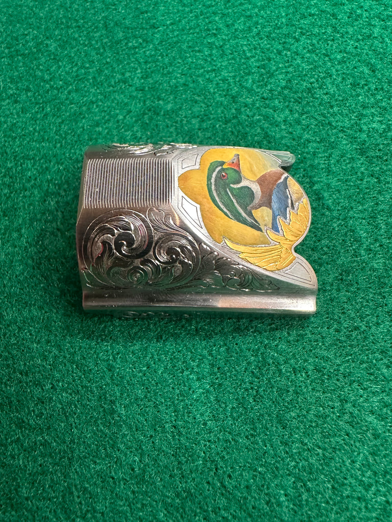 Engraved Krieghoff K80 top latch featuring gold and enamel and scroll on the sides.