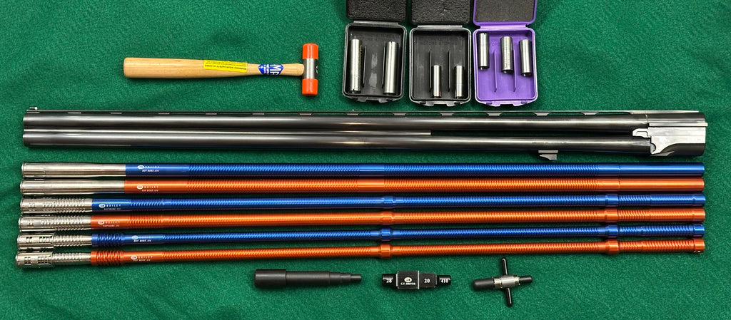 Krieghoff K80 32” parcours barrels. The barrel is a fixed choke barrel that is M/IM. The Briley ultimate ultralight tube set is fit to this barrel. (20, 28 and .410) tubes included and extra chokes for each tube set.