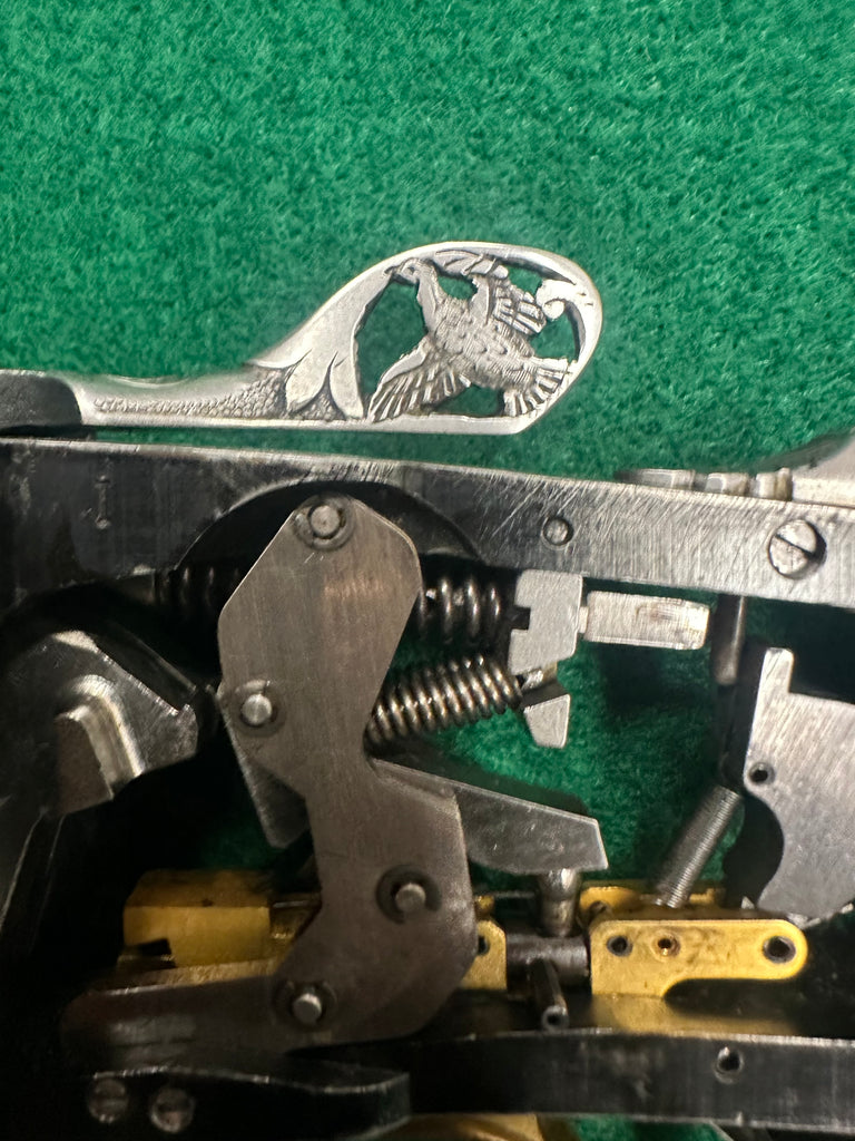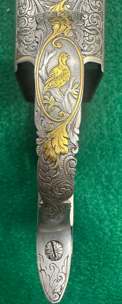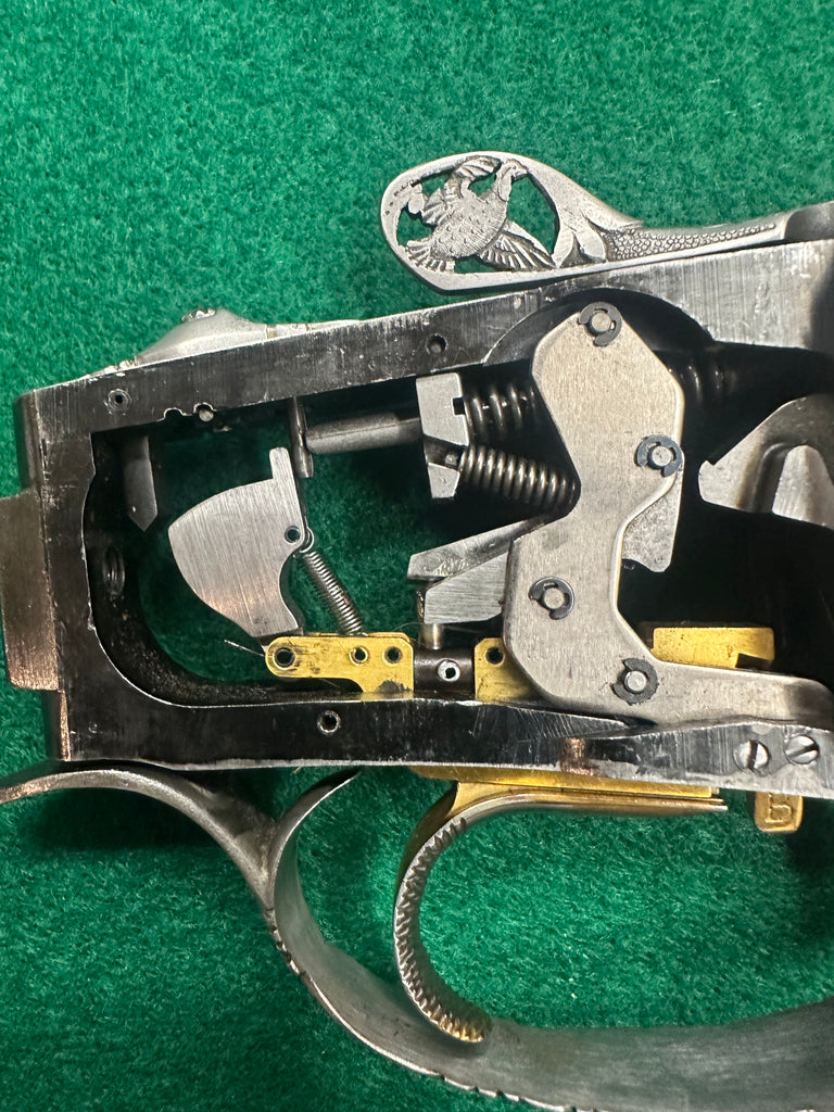 This is one of the nicest Angelo Bee receivers I have ever seen. Very late serial number for the model 32. All internals have been upgraded to K80 internals. The trigger guard is scalloped and the opening lever is pierced and engraved on both sides.